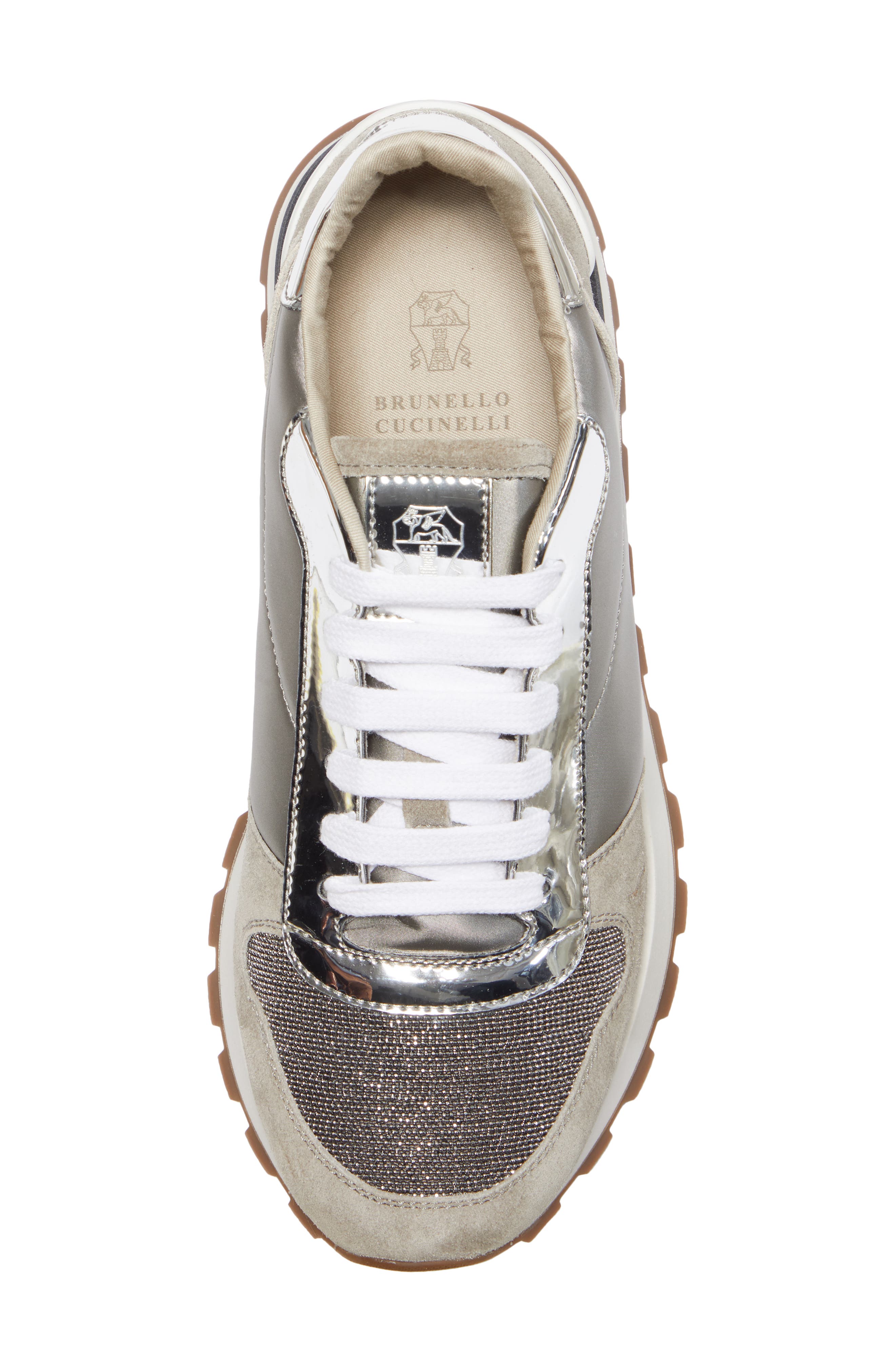 Up to 3 cash back Shop the Brunello Cucinelli shoe collection at Bergdorf Goodman. Brunello Cucinelli Woman Leather-trimmed Bead-embellished Brushed Stretch-knit Sneakers Light Brown Size 37. Combinations of texture and color characterize the modern elegant style of the Womens Sneakers.