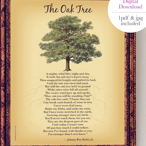Oak Tree Poem Inspirational Printable Art Nature Wall Art Etsy